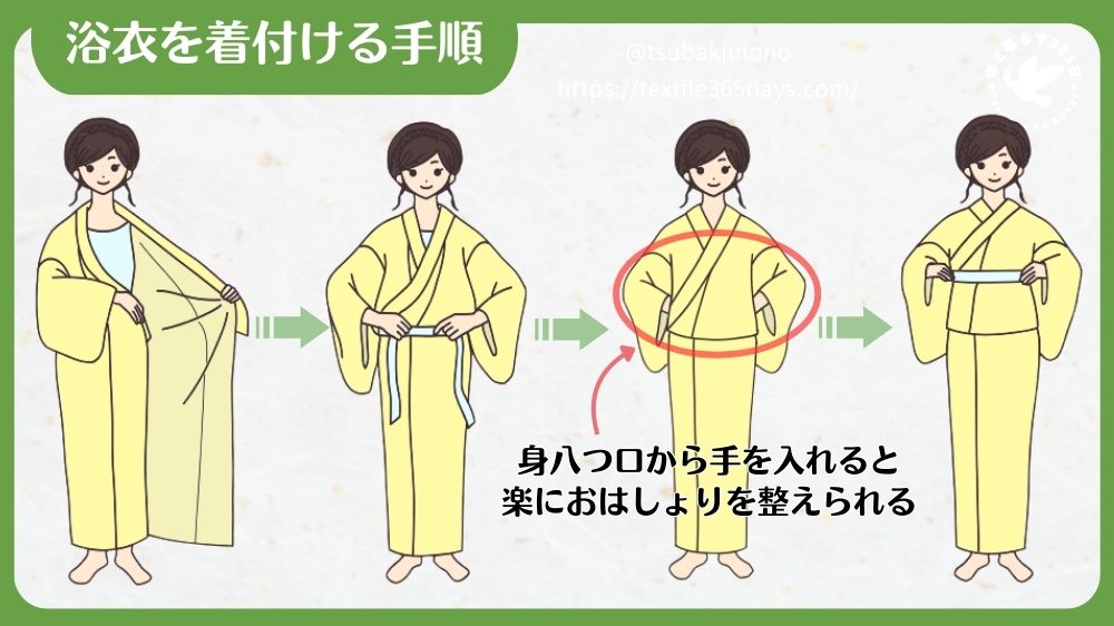 体型や肩の厚みに合わせて身丈を微調整すると、おはしょりを作りやすくなります。