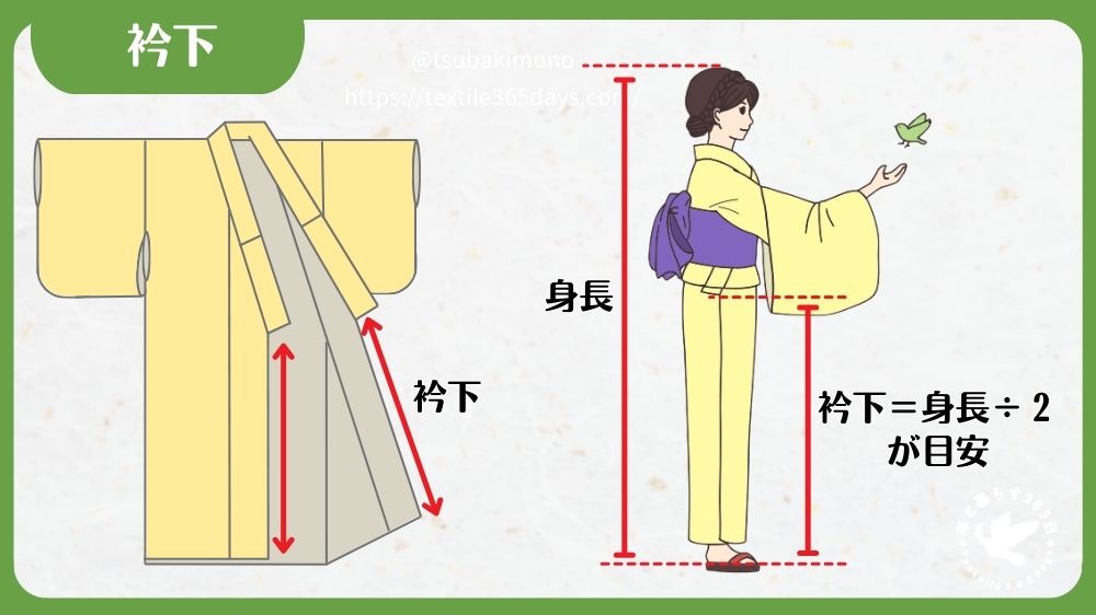 - 中間体型の人…衿下=身長÷2(標準)