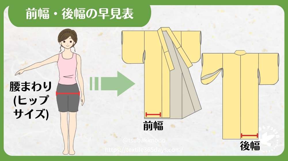腰まわりから割り出す前幅と後幅の早見表