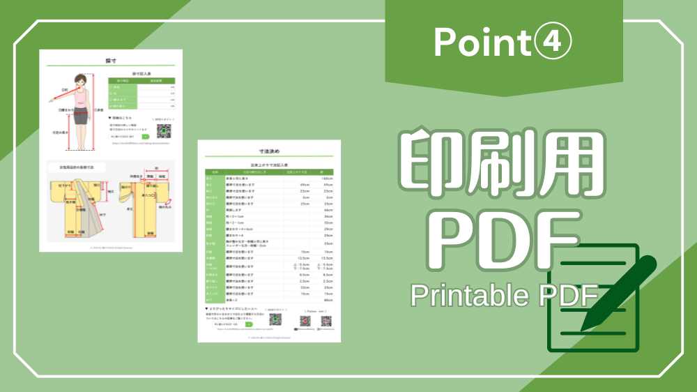 採寸した数値や出来上がり寸法を書き込みながら作業できるよう、A4サイズにまとめたPDFを用意しました。印刷してお使いください。