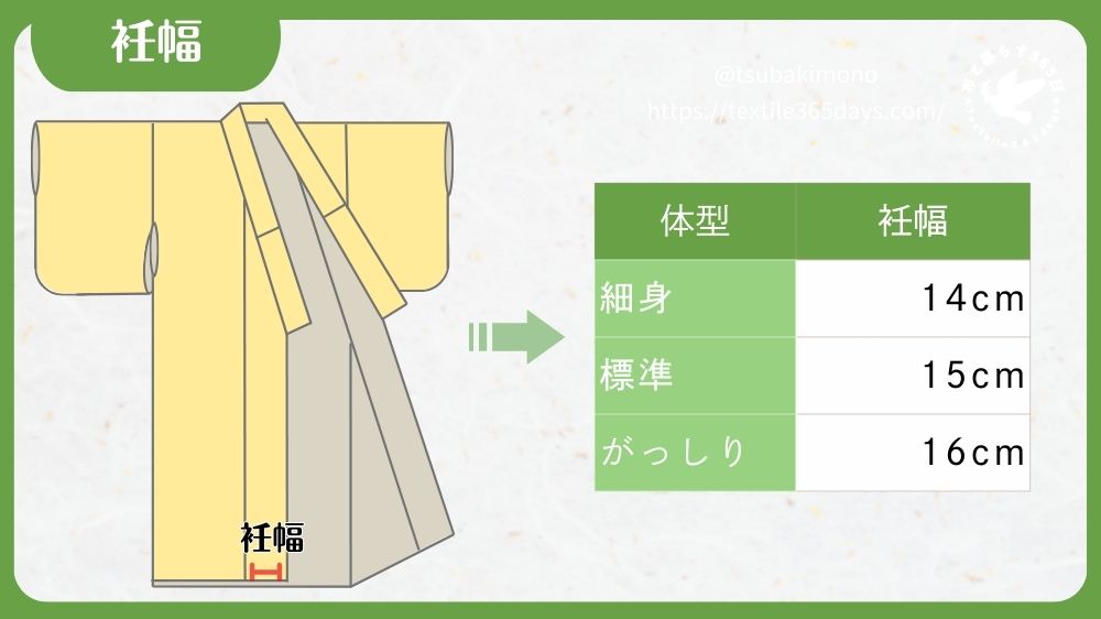 - 中間体型の人…衽幅=15cm(標準)