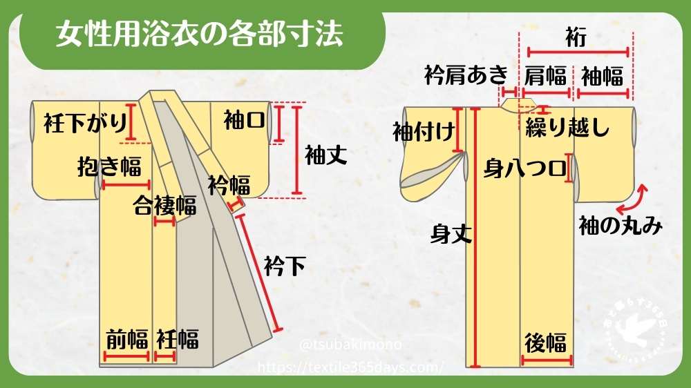 【女性用の浴衣】出来上がり寸法表と計算方法